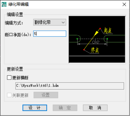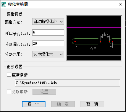 编辑绿化带功能是根据用户输入的各种参数在绿化带上开设绿化带断口的功能。