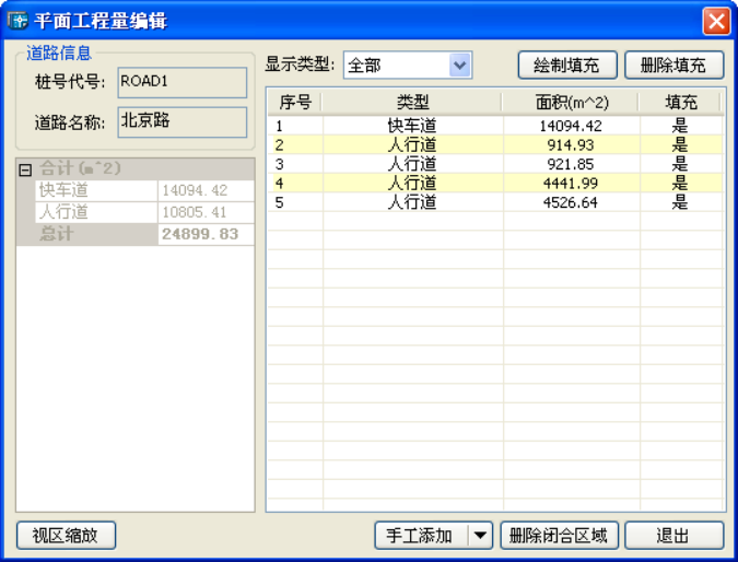 “显示类型”:控制列表中显示的闭合区域,可选项有全部、快车道、慢车道、人行道、导流岛、中央分隔带、快慢车道分隔带。