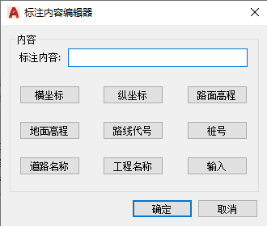 点击后在标注内容编辑框后追加一个“<路面高程>”,表示标注点处的路面高程或交叉口高程(保留小数点后三位小数),如果取不到值就设为空。